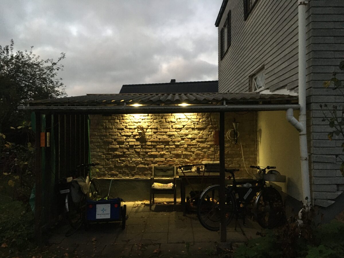 2 st LED lampor som drivs av solarXbike batteri som laddas av solenergi. Led lamporna är 3 Watt och 24Volt För att konvertera spänning från 42VDC till 24VDC använder vi en liten buck regulator.