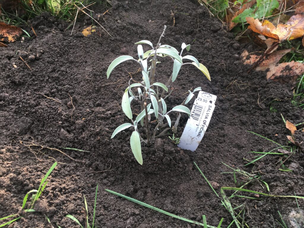 Har idag planterar en kruka med Salvia på en plats som jag döpt till Scarborough fair, inspirerad av den vackra balladen. Platsen är en ring av stenar som tidigare var platsen för ett körsbärsträd, som jag plockade ner av olika anledningar. Bären blev inte så goda som jag hoppats och de behövde nästan vara svarta för att ha den sötma man vill ha. Vilket gjorde att de ofta blev föda åt fåglar. I ringen är tanken att plantera kryddorna som finns i sången. Persilja , salvia, timjan och rosmarin.
