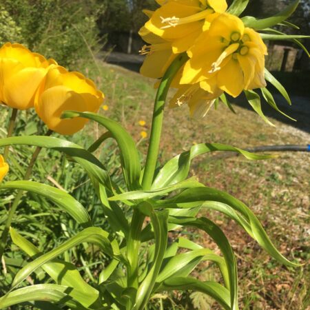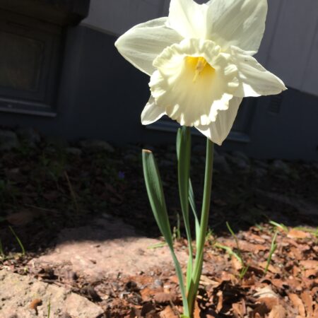 På framsidan av huset tittade denna vita lilja fram i slutet av April