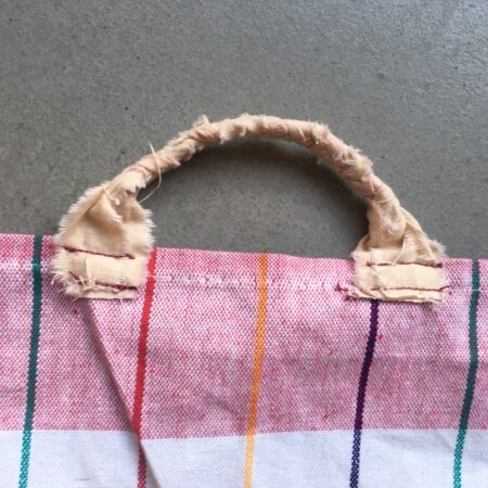Här är ett exempel på hur man kan använda gamla lakan för att göra handukshängare. Genom att fläta remsor av lakan så kan man enkelt få en hållbar och trevlig hängare som sys fast på handduken.