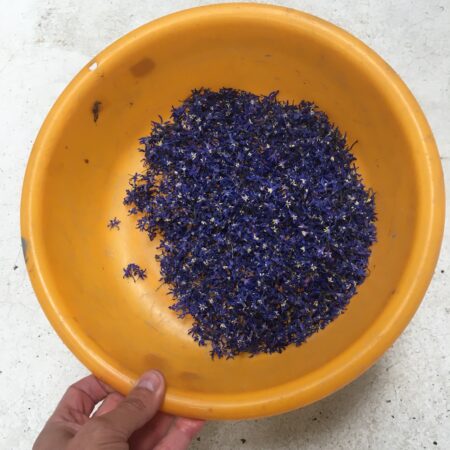Ett försök att se om man kan använda växter som pigment eller på annat sätt färga material.